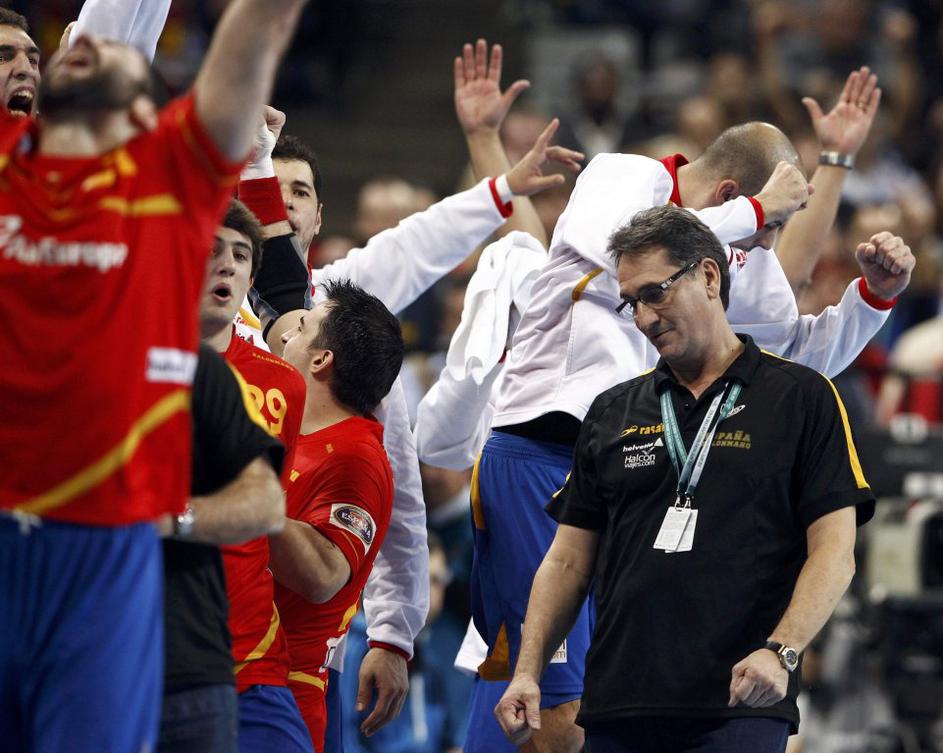 (Španija : Danska) Selektor Valero Rivera je takole pospremil slavje svojih varovancev.