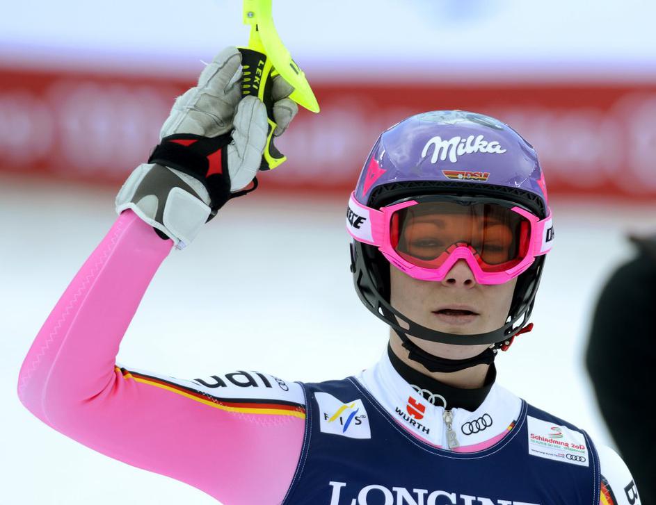 Maria Höfl-Riesch je napadala iz četrtega mesta in osvojila drugo zlato kolajno na svetovnih prvenstvih (2:39;92).