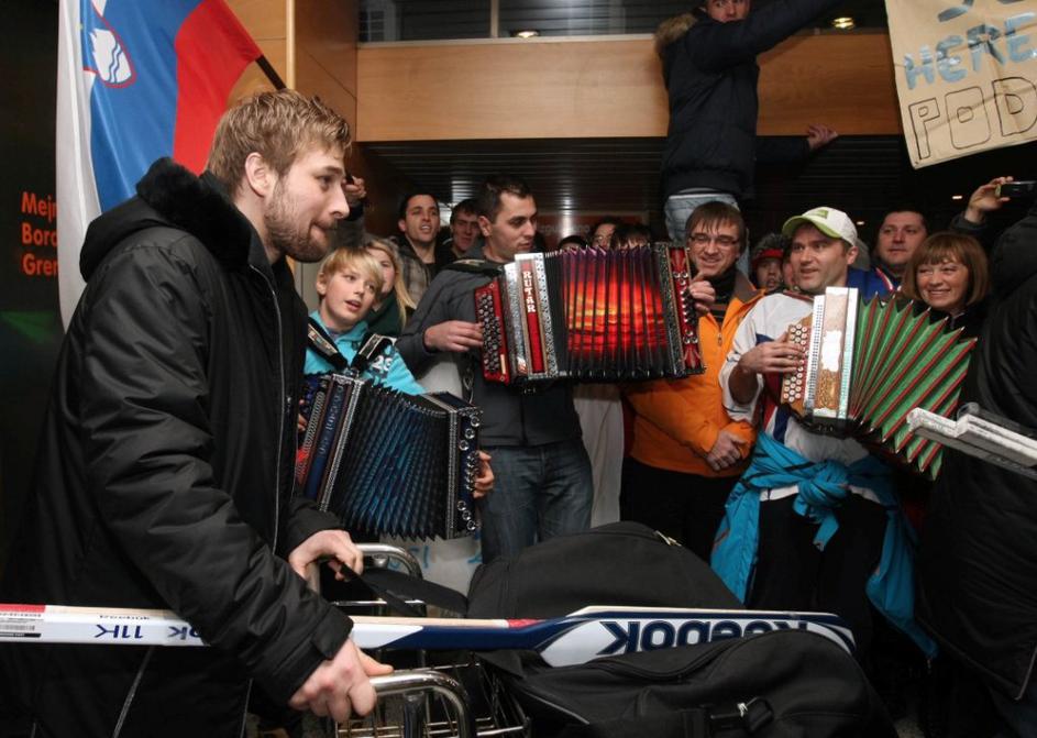 Kopitar Zupančič Slovenija reprezentanca hokej povratek letališče Brnik olimpijs