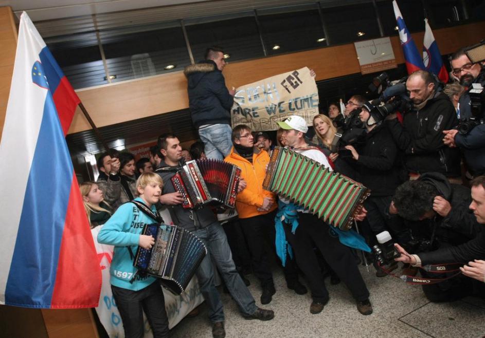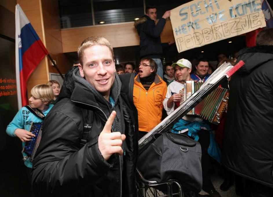 Kristan Slovenija reprezentanca hokej povratek letališče Brnik olimpijske kvalif