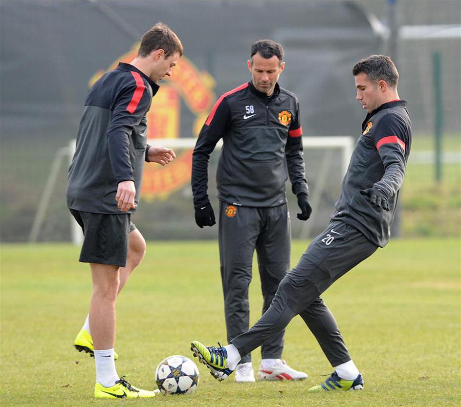 Robin van Persie, Ryan Giggs in Jonny Evans (z desne).