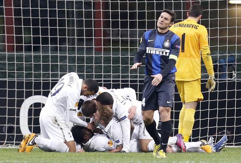 (Inter Milan - Tottenham)(Inter Milan - Tottenham) Tottenham je zapravil prednost treh golov, vendar si je napredovanje zagotovil po zaslugi gola v gosteh. Reuters