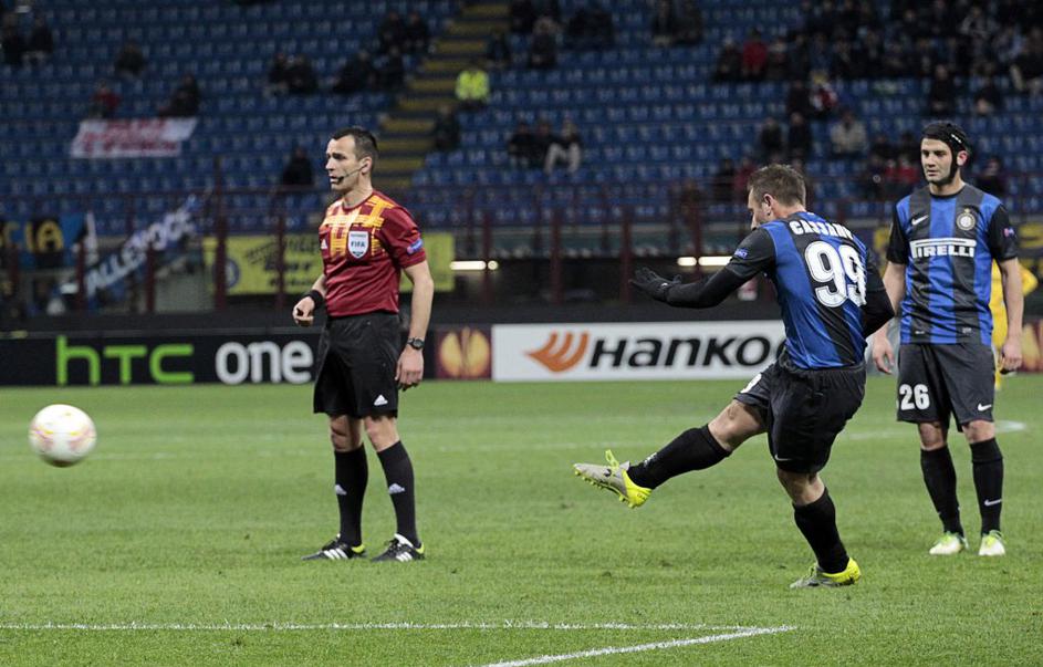 (Inter Milan - Tottenham)(Inter Milan - Tottenham) Antoni Cassano je v sodnikovem podaljšku asistiral za četrti gol Interja. Reuters