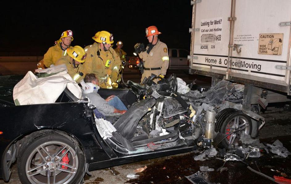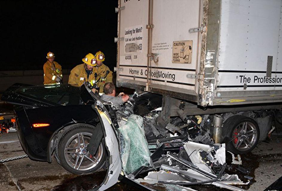 Voznik corvette skoraj ostal brez glave