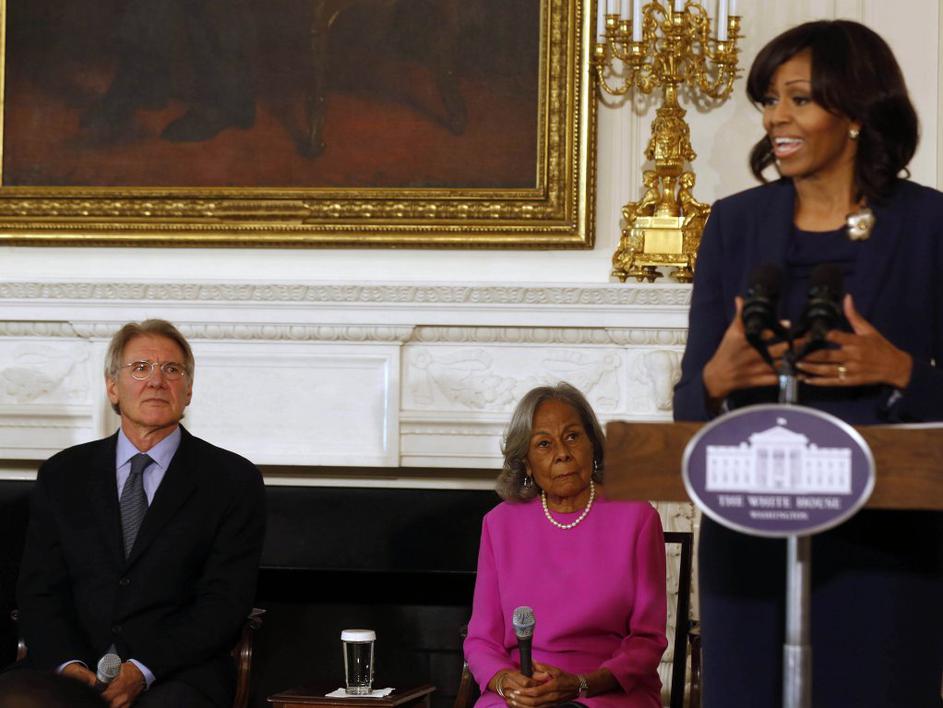 Harrison Ford Michelle Obama"Harrison Ford. Ali mislite, da je vas vrglo, ker sem jaz tukaj? Mene je vrglo, ker je on tukaj," je povedala ameriška prva dama Michelle Obama, ko se je v Beli hiši srečala z igralcem Harrisonom Fordom. Reuters