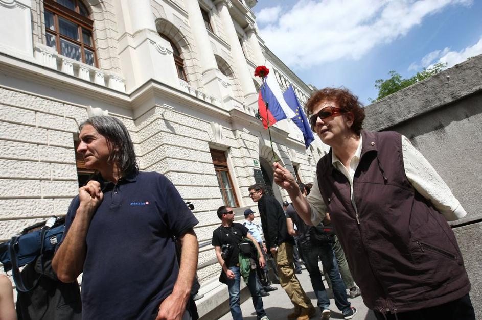Protesniki, ki so se zbrali pred sodiščem ...