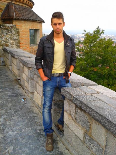 ulični stilNaser nosi jakno Bershka, kavbojke Armani, pastelno rumeno majico H&M, uro Guess, čevlje in pas Zara. Natalija