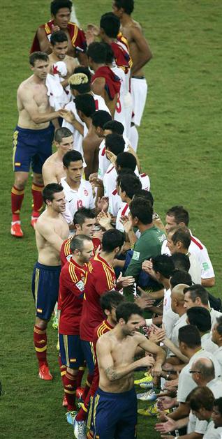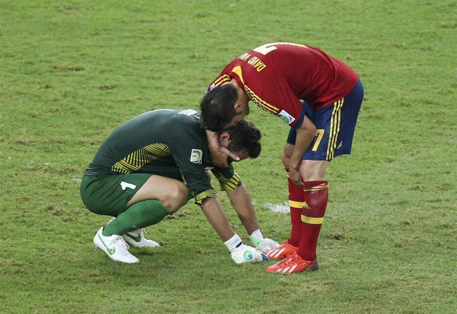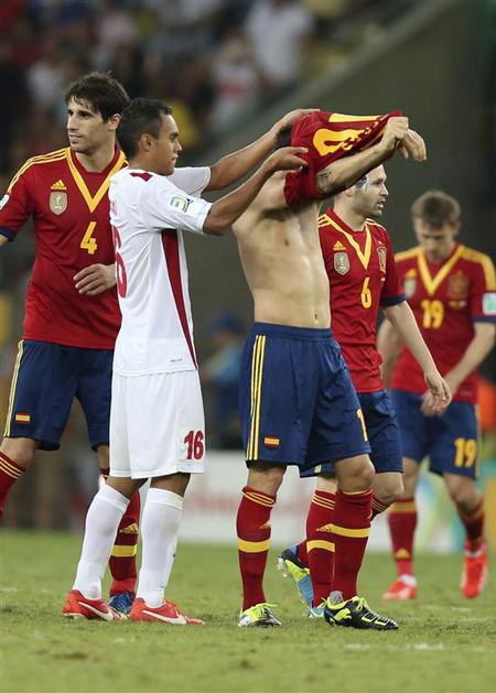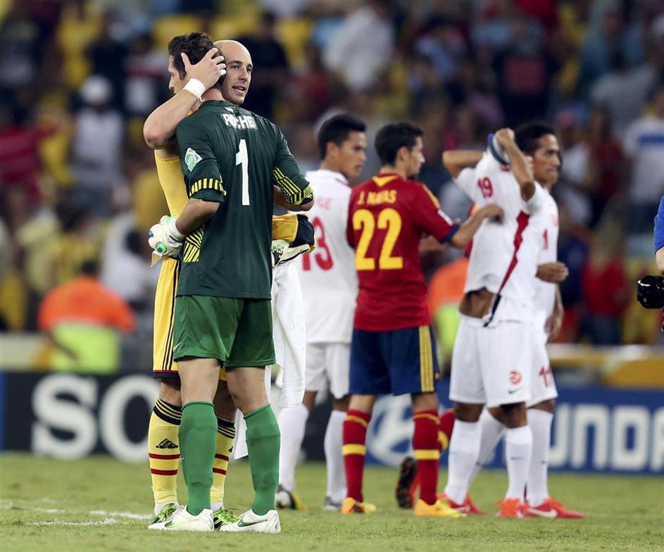 Torres Azpilicueta Villa Monreal Navas Španija Tahiti pokal konfederacij Rio de (Španija − Tahiti) Pozdrav po koncu tekme. Reuters Torres Azpilicueta Villa Monreal Navas Španija Tahiti pokal konfederacij Rio de