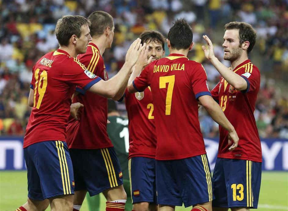 Monreal Mata Silva Torres Villa Španija Tahiti pokal konfederacij Rio de Jan (Španija − Tahiti) EPA Monreal Mata Silva Torres Villa Španija Tahiti pokal konfederacij Rio de Jan