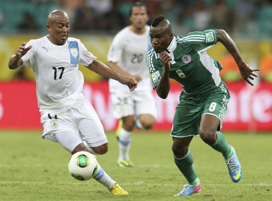 Omerujo Ideye Nigerija Urugvaj pokal konfederacij Salvador (Nigerija − Urugvaj) EPA Omerujo Ideye Nigerija Urugvaj pokal konfederacij Salvador