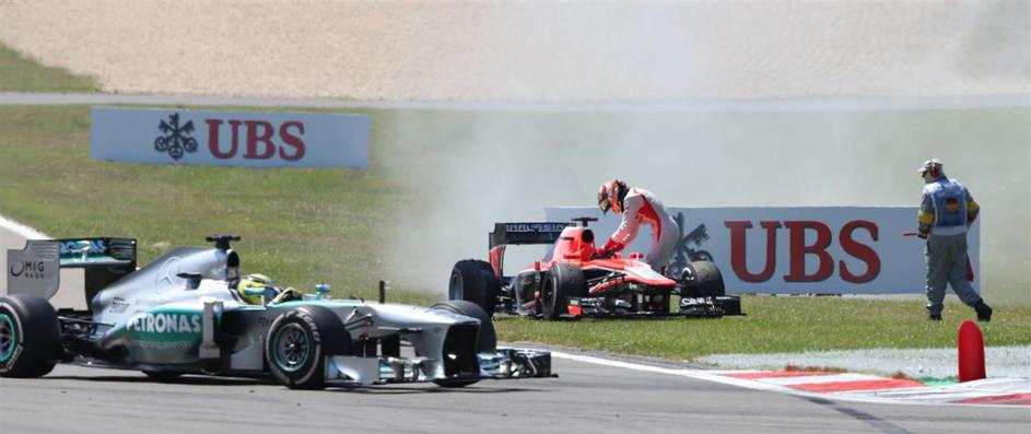 Marussia Julesa Bianchija je zagorela in se brez dirkača popeljala po stezi.