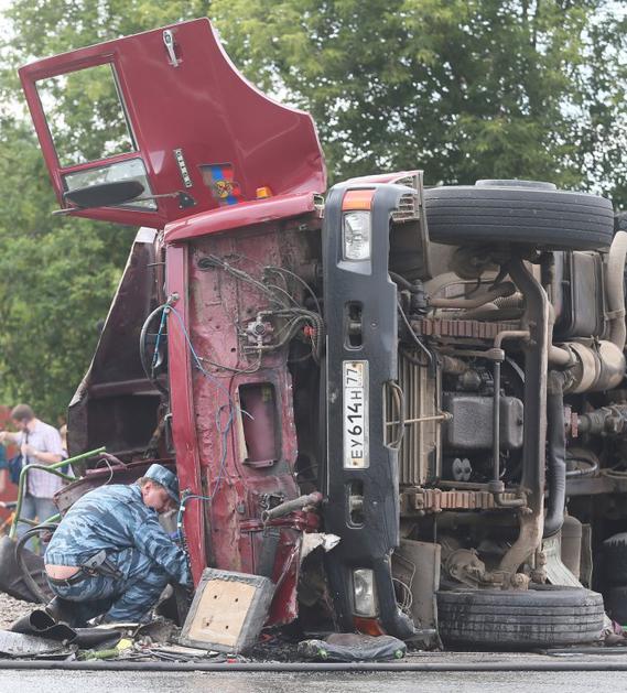 nesreča, Moskva, avtobus, tovornjak