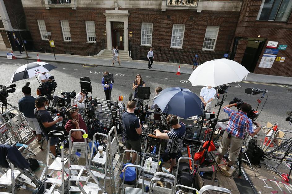 Množica fotografov pred oddelkom Lindo, kjer je Kate rodila sina.