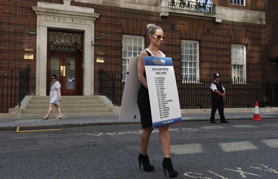 Ženska nosi tablo s stavnicami, kako bo ime novemu princu.