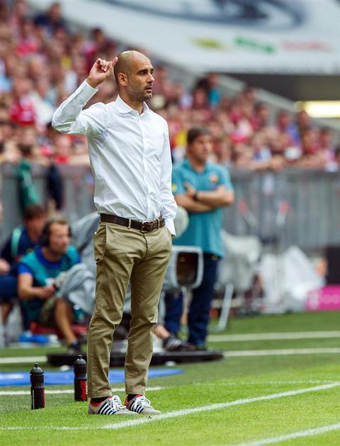 Guardiola Bayern München Barcelona(Bayern München − Barcelona) Tekma se je zaradi prometnega kaosa v Münchnu in težav na podzemni železnici začela z veliko zamudo. EPA