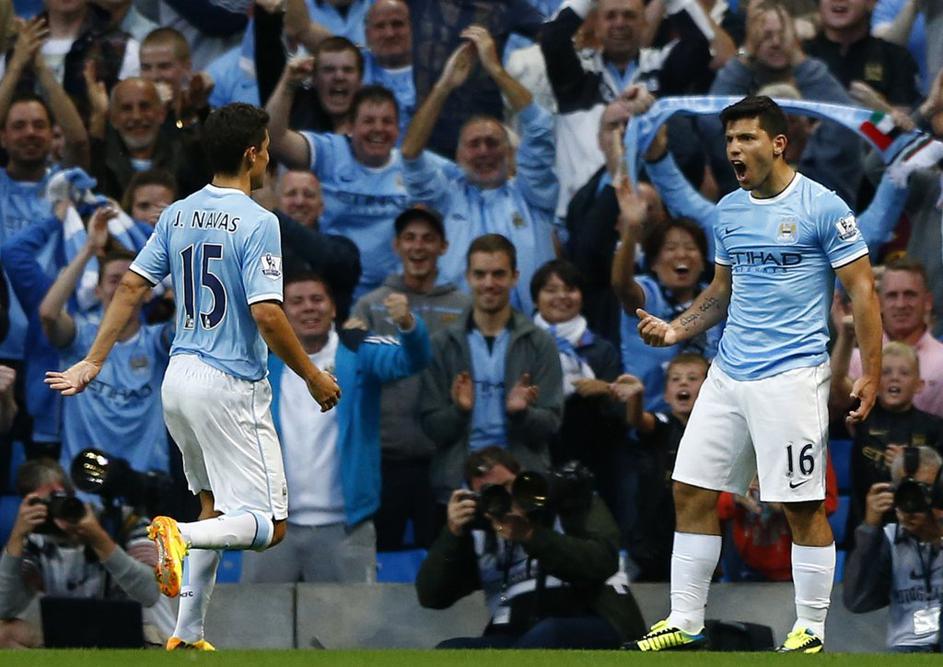 (Manchester City - Newcastle United) Drugega Sergio Agüero (desno).