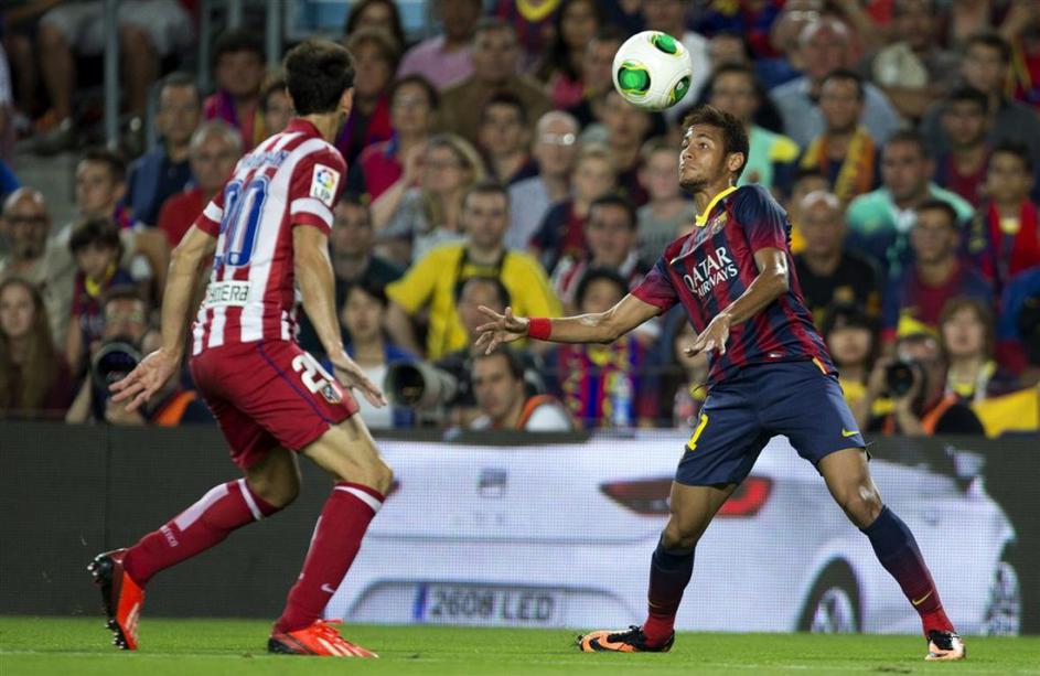Neymar naslov prvaka pokal trofeja zmaga Barcelona Atletico Madrid superpokal(Barcelona – Atlético Madrid) Neymar je prvič po prihodu v Katalonijo začel tekmo ob Lionelu Messiju, a bil skupaj z Argentincem večino časa nemočen. Vseeno se je skupaj s trenerjem Gerardom Martinom veselil svoje prve trofeje pri Blaugrani. Reuters