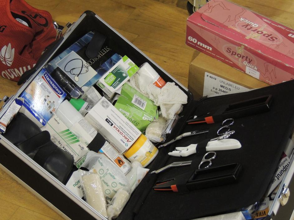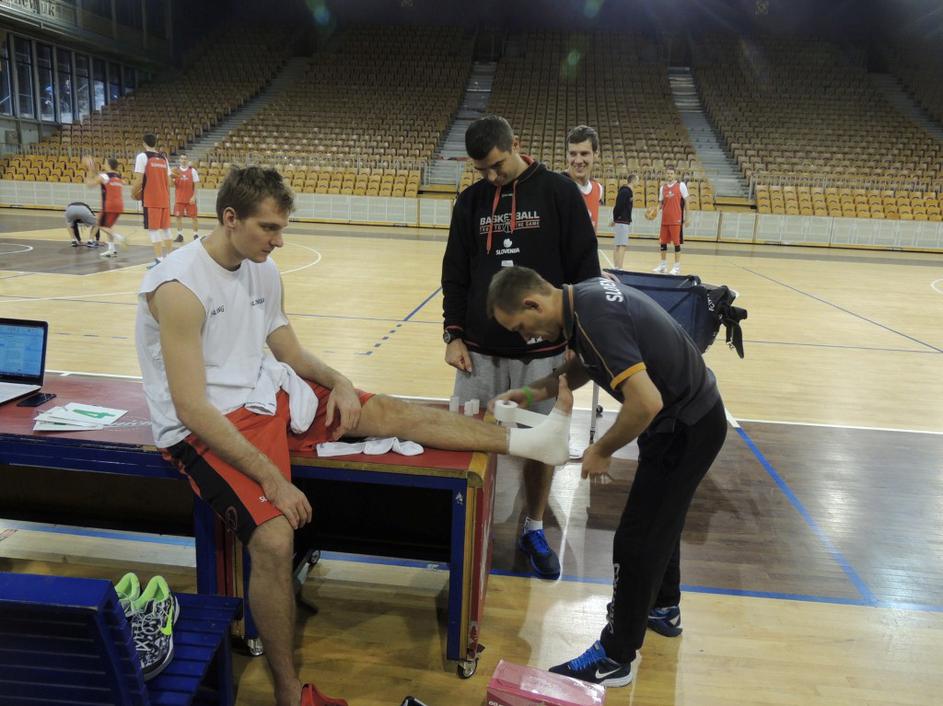 Tudi "Duracell zajček" Zoran Dragić kdaj potrebuje nekaj pomoči fizioterapevtov. V ozadju se smeji njegovemu bratu Goranu.