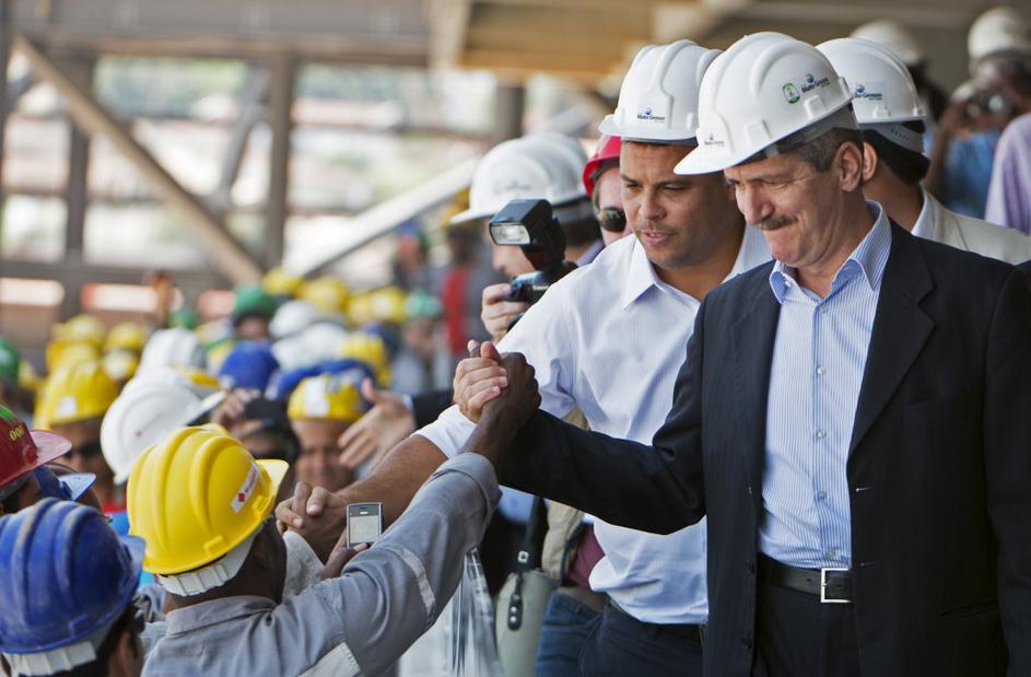 Prizorišče sta obiskala tudi generalni sekretar Fife Jerome Valcke (drugi z leve) in nekdanji zvezdnik Ronaldo (drugi z desne).