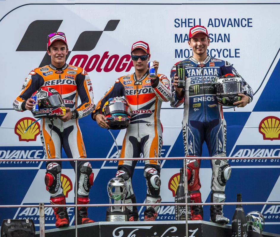 (VN Malezije) Z leve proti desni: Marquez, Pedrosa, Lorenzo.