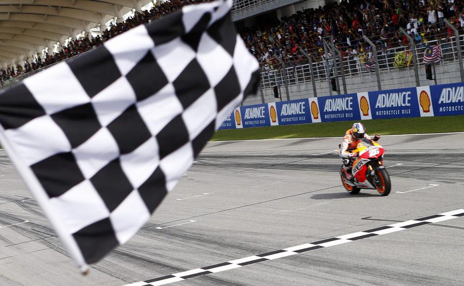 (VN Malezije) Pedrosa ob prečkanju ciljne črte.