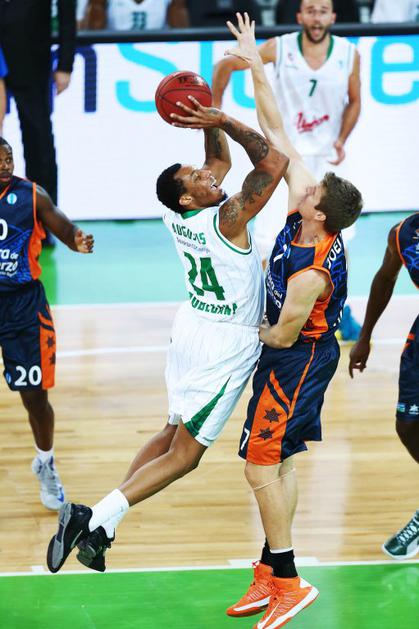 (Union Olimpija - Valencia) Deividias Gailius je prispeval 12 točk in je bil eden najbolj zaslužnih za zmago Olimpije.