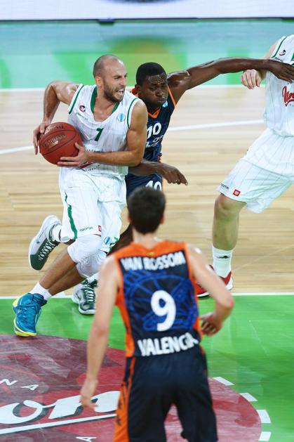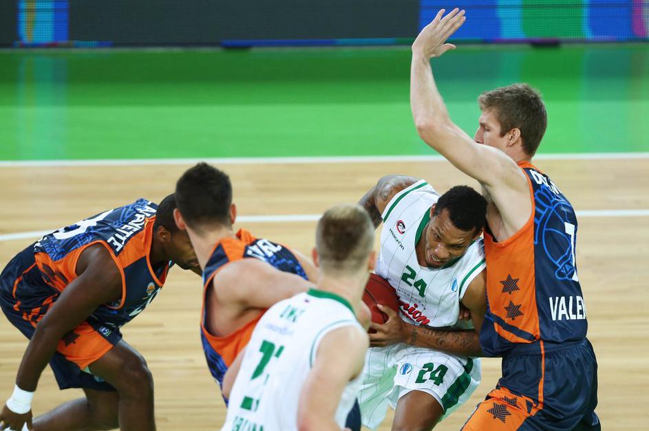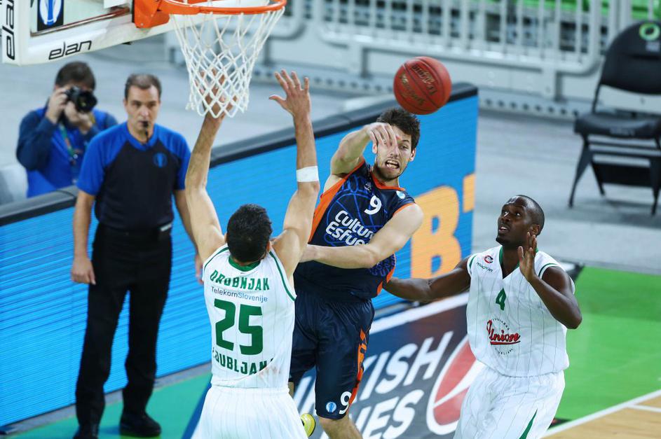 (Union Olimpija - Valencia) Union Olimpija je v zadnji četrtini skoraj zapravila ogromno prednost, nato pa vendarle tekmo zbrano pripeljala do konca.