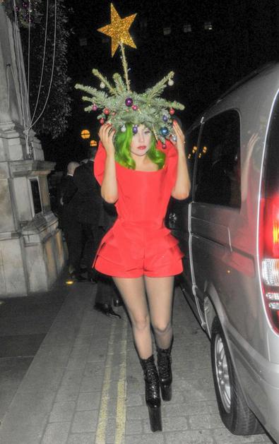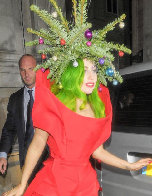 Lady Gaga si je na glavo nadela praznično ikebano.