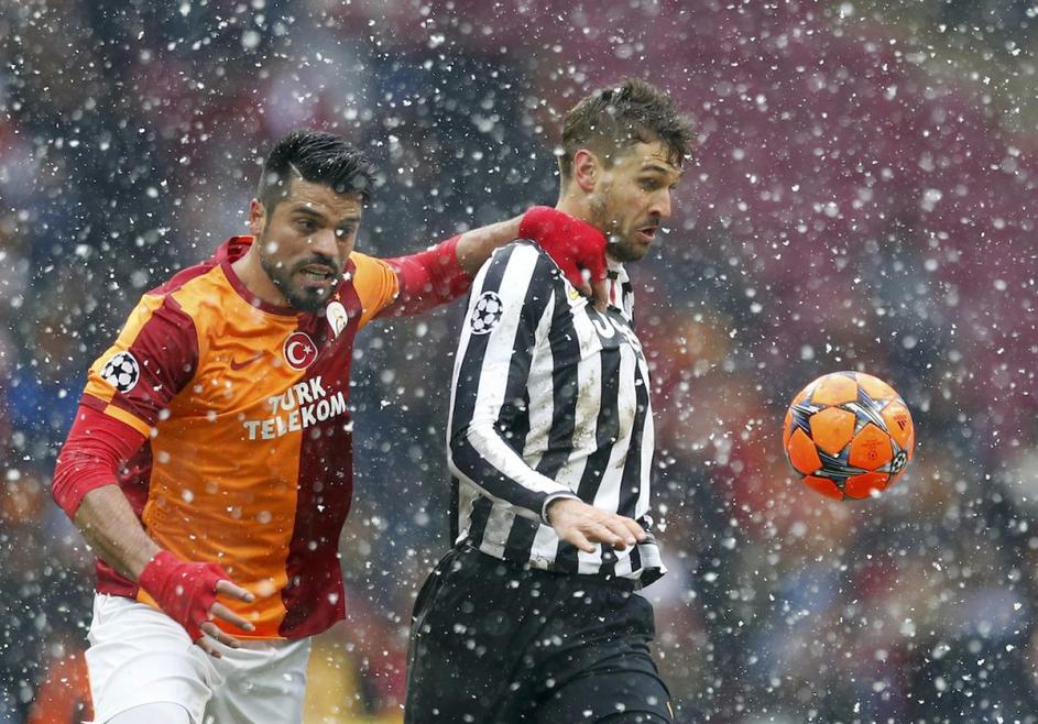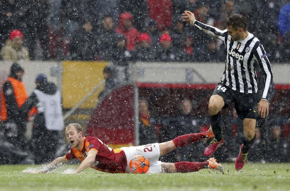 Gokhan Zan in Fernando Llorente na tekmi med Galatasarayem in Juventusom.