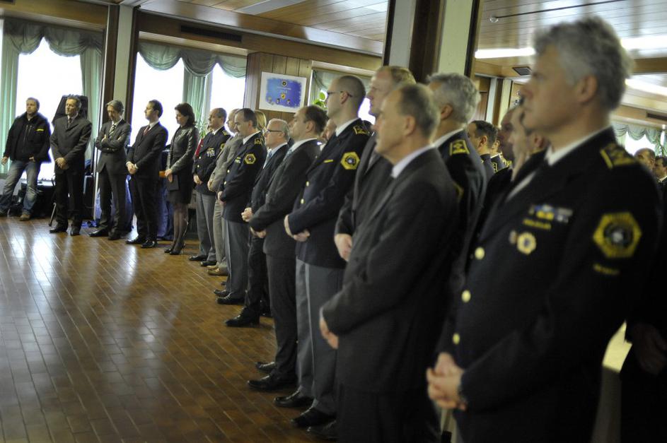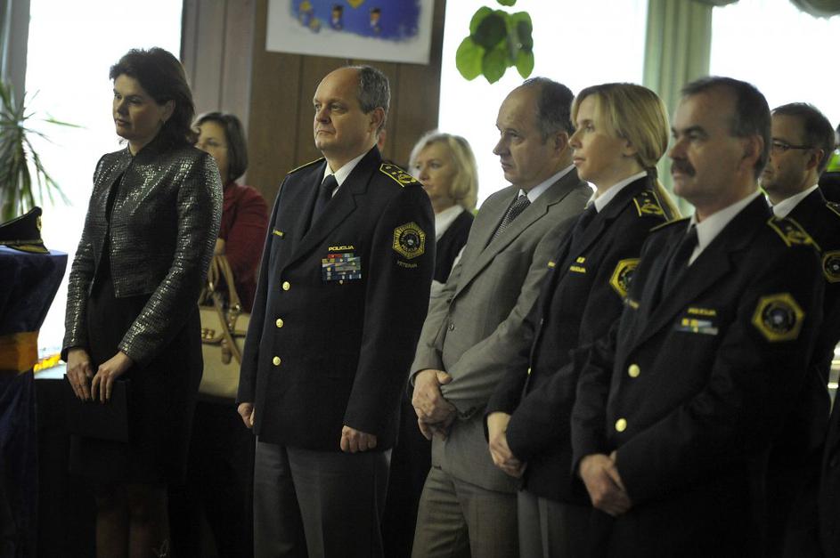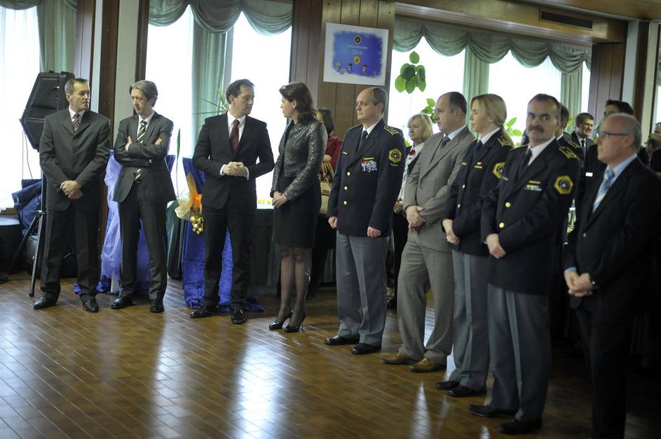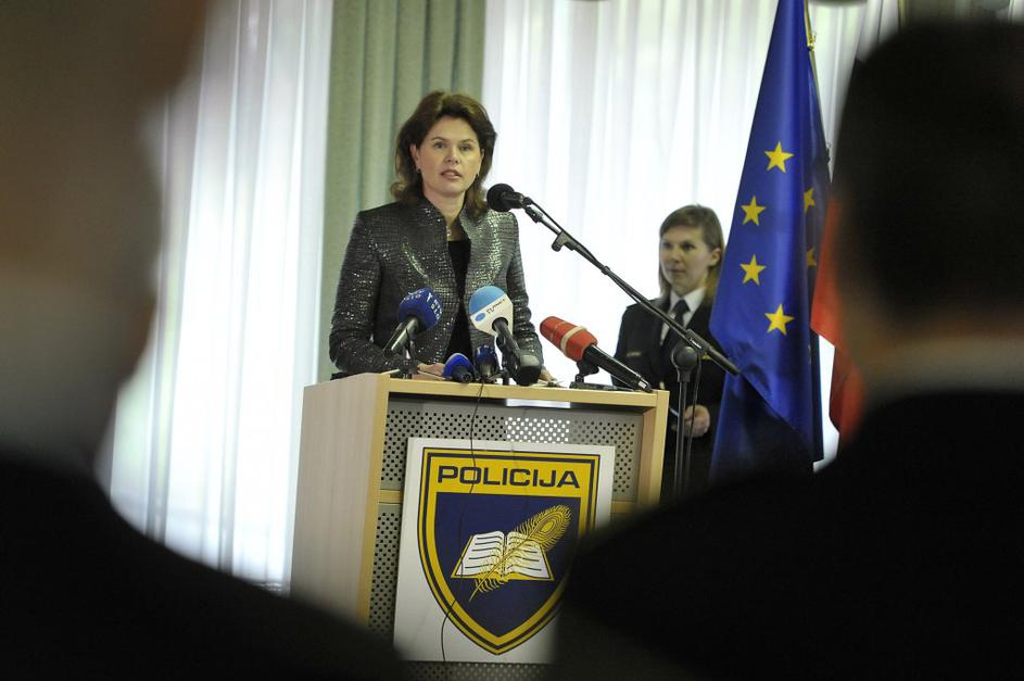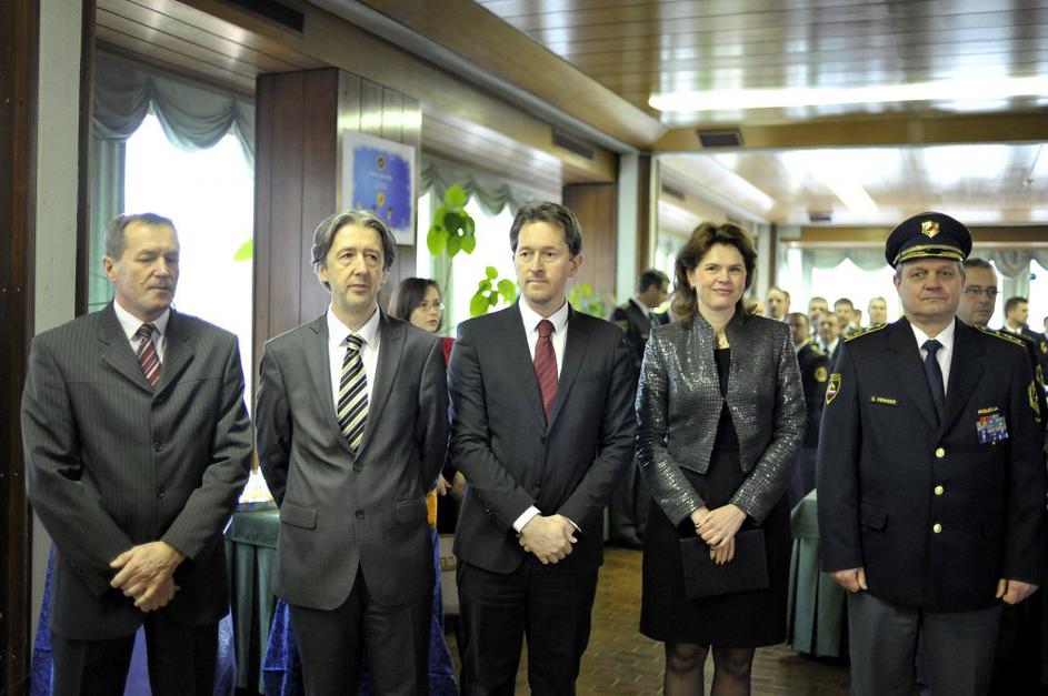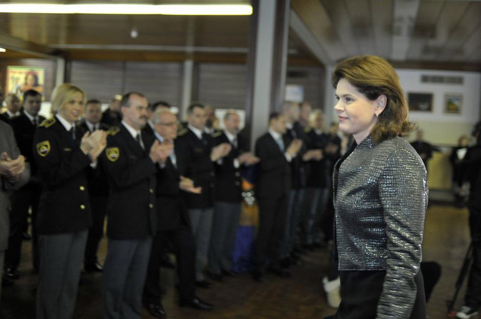 Na sprejemu komandirjev pri generalnem direktorju policije Stanislavu Venigerju sta bila tudi premierka Alenka Bratušek in notranji minister Gregor Virant.