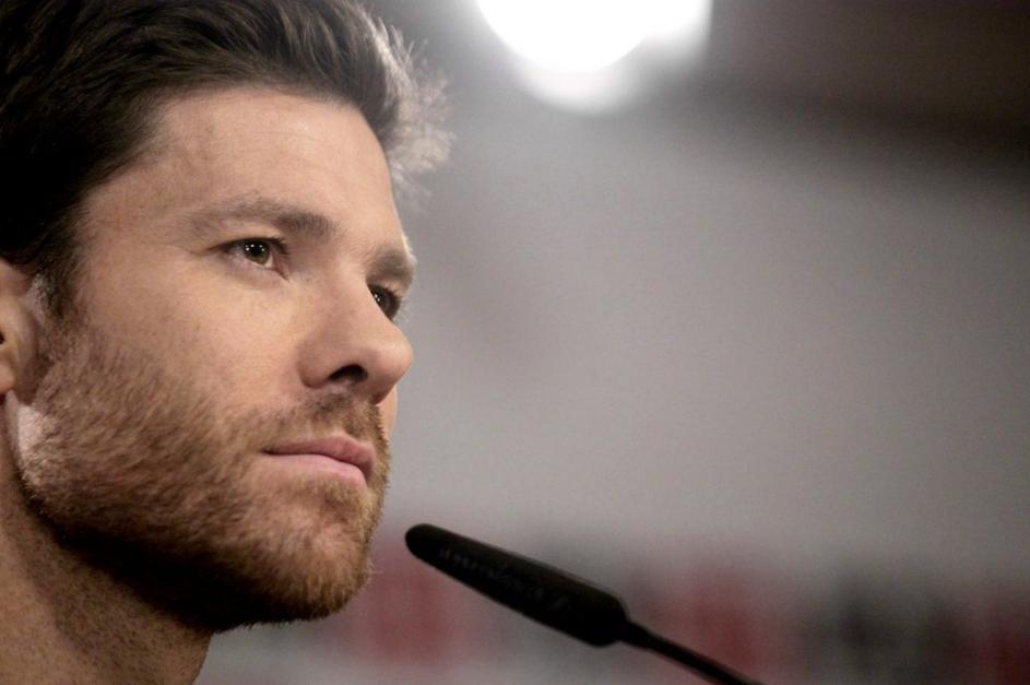 Xabi Alonso prihaja na novinarsko konferenco v Madridu.