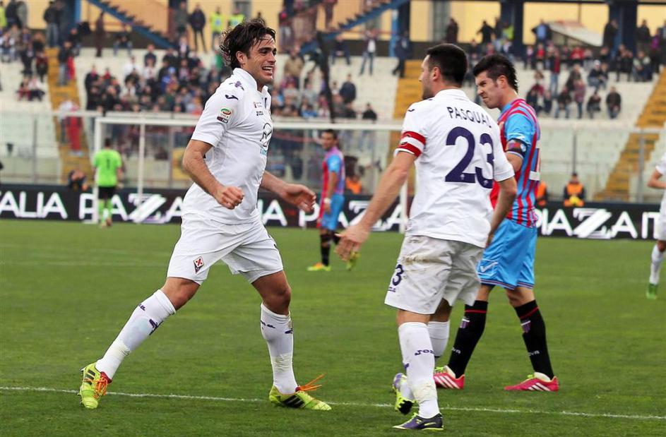 Matri Pasqual Catania Fiorentina Serie A Italija liga prvenstvo (Catania – Fiorentina) Viola slavi novega junaka Alessandra Matrija (levo), ki je na debiju zadel dvakrat. EPA Matri Pasqual Catania Fiorentina Serie A Italija liga prvenstvo