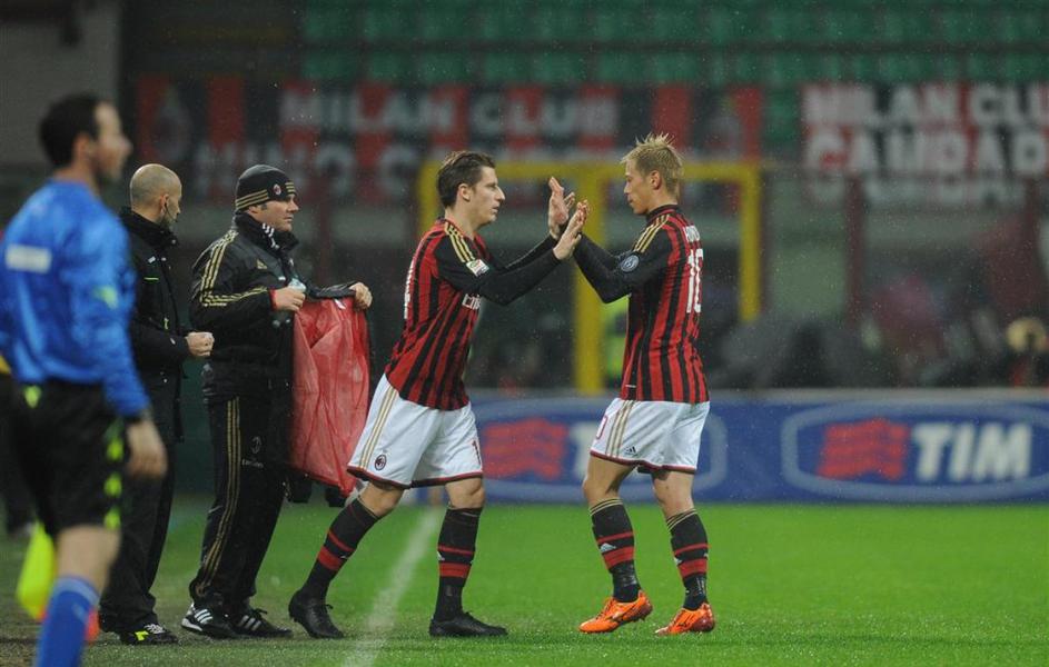 Birsa Honda AC Milan Hellas Verona Serie A Italija liga prvenstvo (AC Milan – Hellas Verona) Seedorf je v drugem polčasu na zelenico poslal tudi Valterja Birso. Šempetrčan je takole zamenjal novega člana kluba Japonca Keisukeja Hondo. EPA Birsa Honda AC Milan Hellas Verona Serie A Italija liga prvenstvo