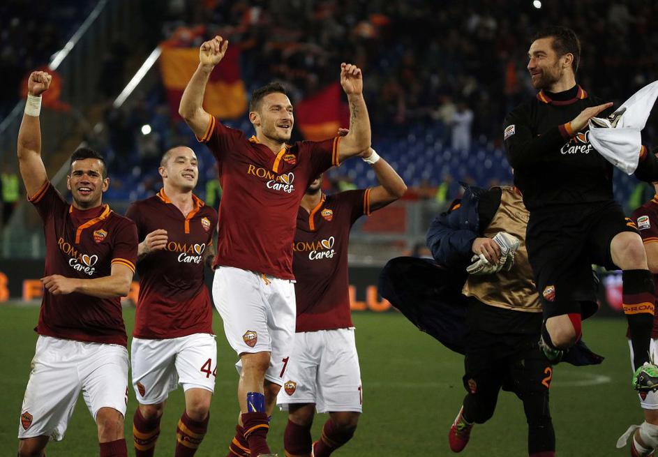 (AS Roma - Livorno) Tudi Roma se je na Olimpicu veselila, Livorno ji ni bil dorasel tekmec (Roma - Livorno). Reuters (AS Roma - Livorno)