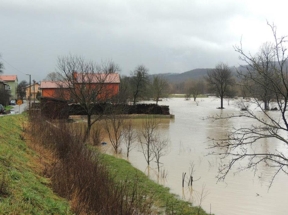 Cesta Kompolje - Struge je zaradi poplavljenega cestišča zaprta.