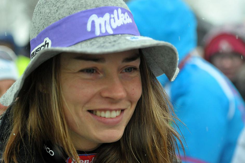 Tina Maze je takole uživala v družbi slovenskih navijačev.