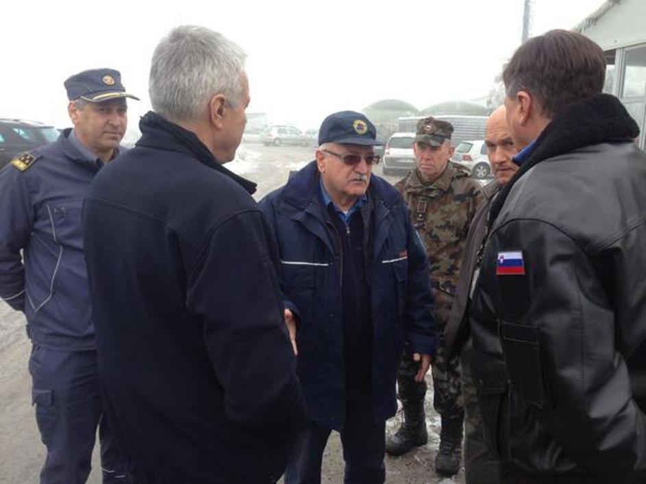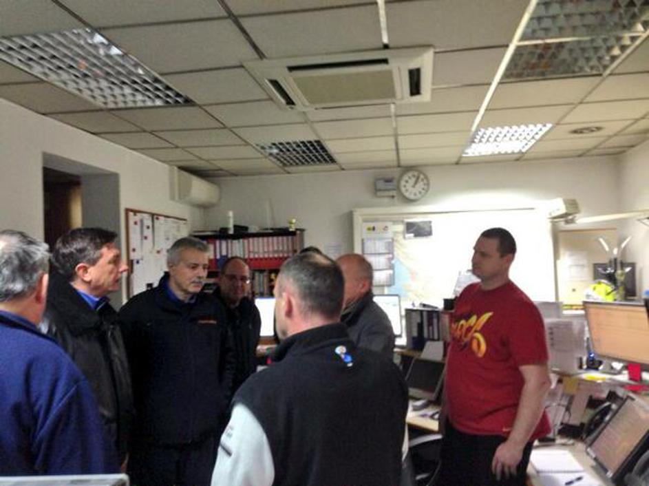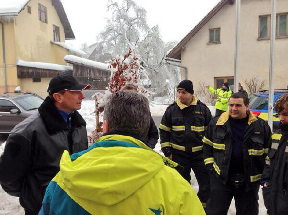 Pripadniki Civilne zaščite poročajo predsedniku RS na poti v Pivko.