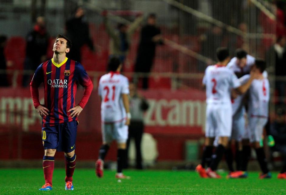 (Sevilla - Barcelona) Lionel Messi in soigralci so se hitro znašli v težavah.