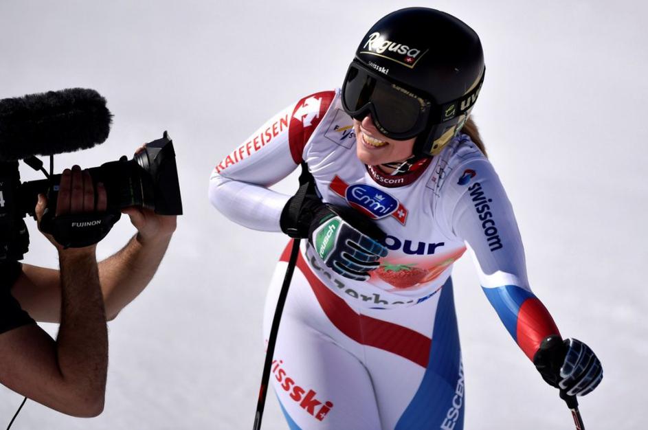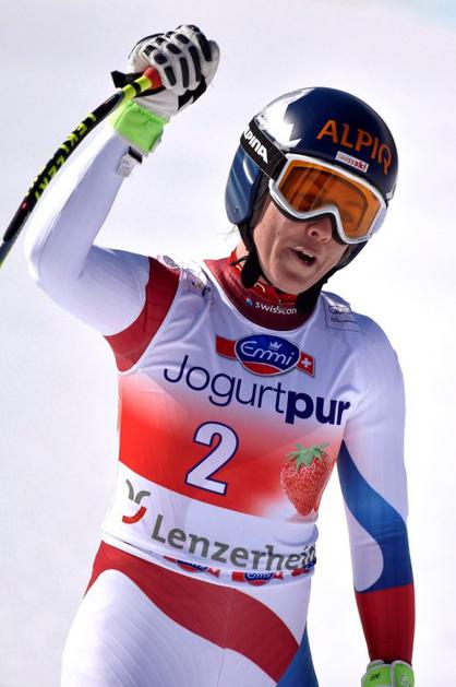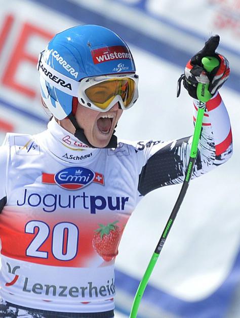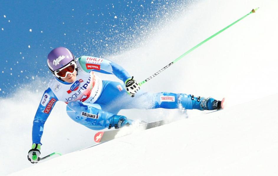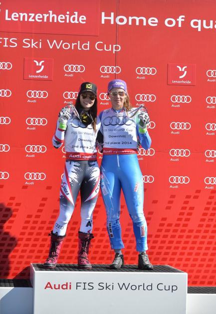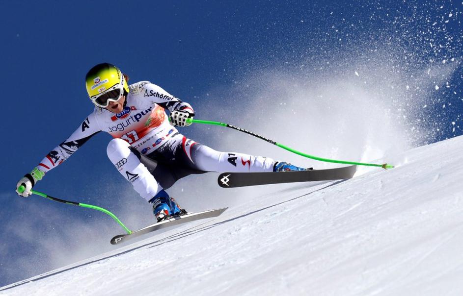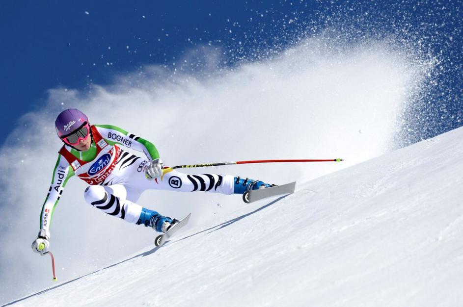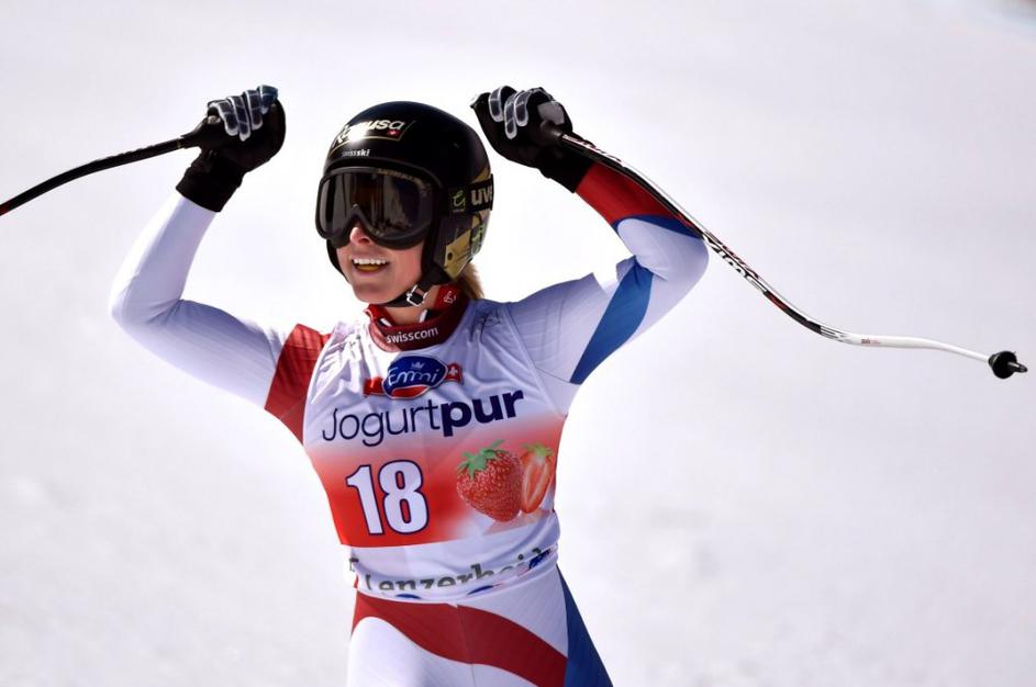 Aufdenblatten Gut Görgl Goergl svetovni pokal finale Lenzerheide smukNajboljši trojec je moral pozirati v cilju, medtem ko so Höfl-Rieschevi pomagali na progi. Ob Gutovi se je drugega mesta veselila Avstrijka Elisabeth Görgl (levo), tretja je bila še ena domačinka Fränzi Aufdenblatten. EPA