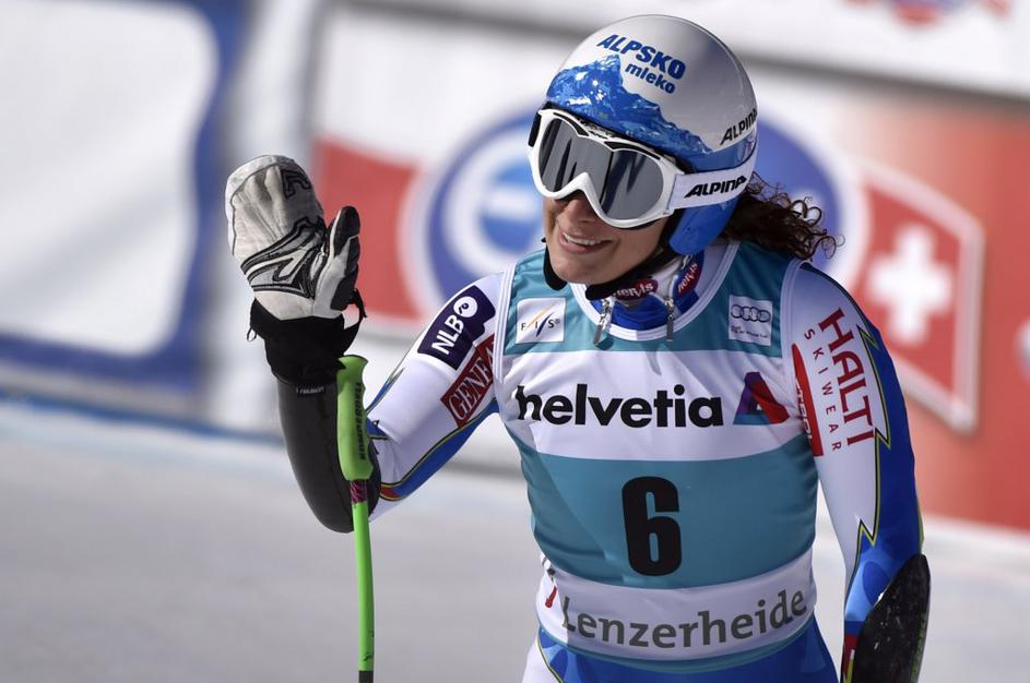 Tina Maze je ponovno stopila na zmagovalne stopničke.