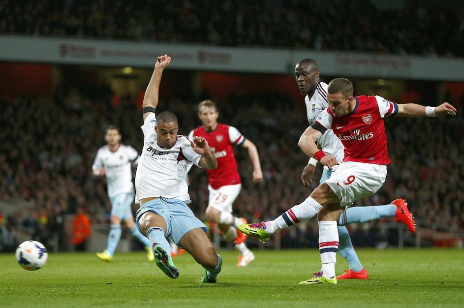 (Arsenal - West Ham) Lukas Podolski je bil z dvema zadetkoma junak tekme.