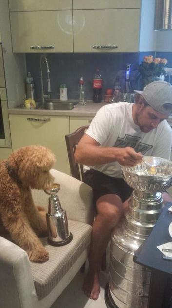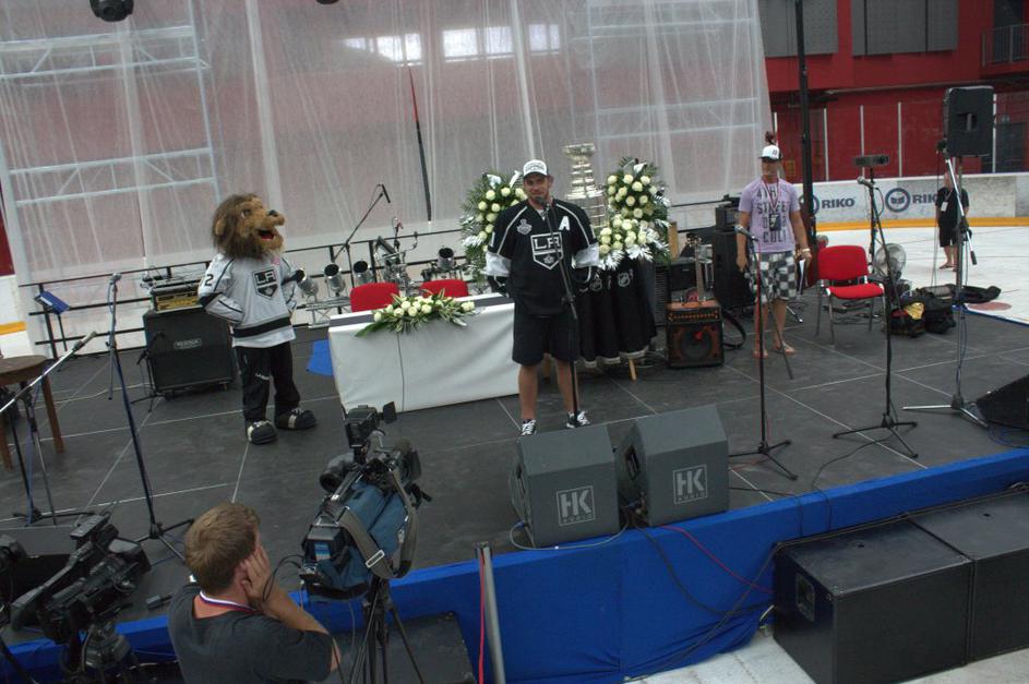 Maskota ekipe LA Kings je pozdravila vrnitev Staleyjevega pokala na varna tla.