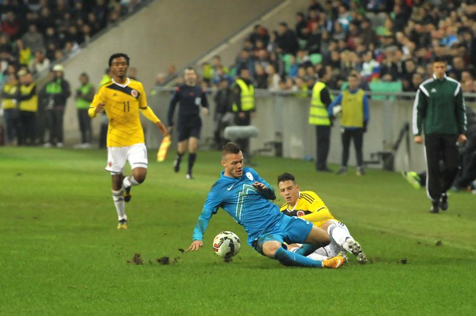 Utrinki s tekme med Slovenijo in Kolumbijo v Stožicah.