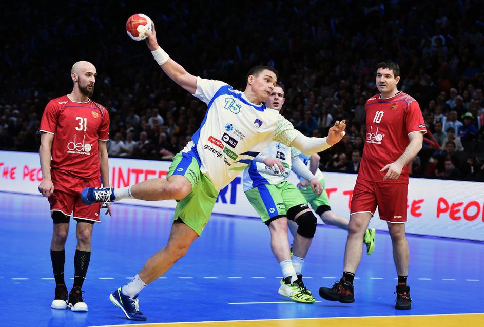 (Rusija - Slovenija) Ruski rokometaši so se zatekali h grobi igri, kar je imelo za posledico številne izključitve. Skupaj so počivali 14 minut, Slovenci le 4.