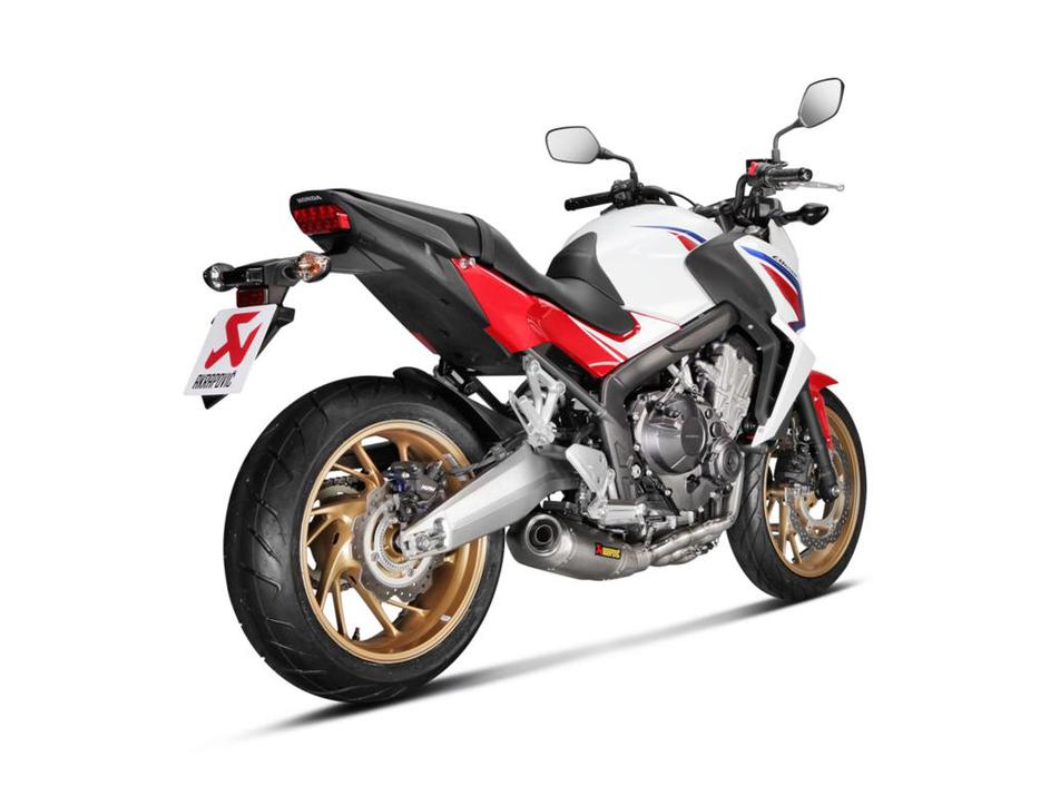Akrapovičev izpušni sistem iz linije racing je namenje hondi CB650F in CBR650F.