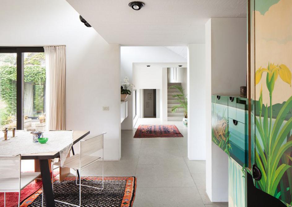 vandemoorteleDom zdaj izgleda lahkoten in svetel. Lastnica je brutalistične elemente vidnega betona in kovinskih okenskih okvirjev spretno uravnovesila s pastelnimi barvnimi poudarki. Žurnal24