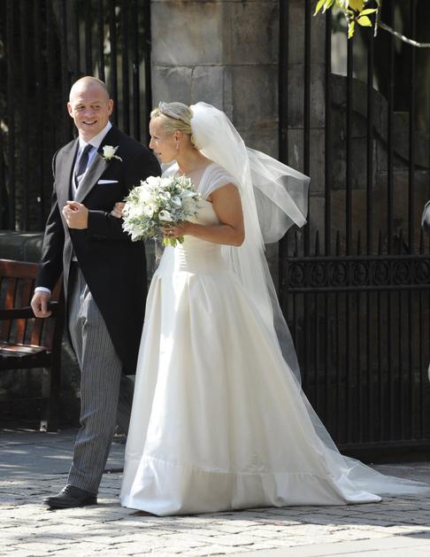 zara phillpsBritanska princesa Zara Phillips, ki se je poročila z angleškim igralcem ragbija, je nosila satenasto obleko Stewarta Parvina, ki velja za najljubšega oblikovalca kraljice Elizabete. Tančica je bila znamke Jimmy Choo. Reuters