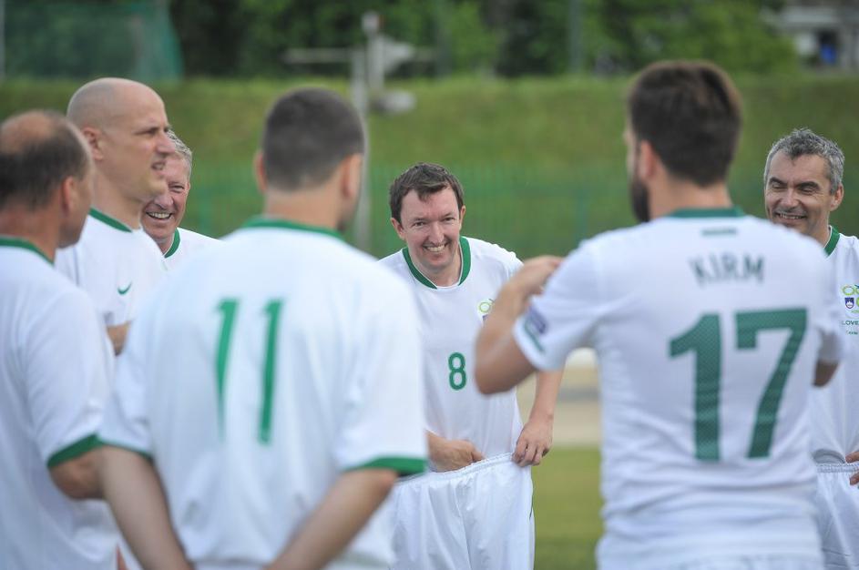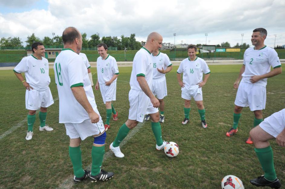 Slovenski in britanski poslanci so se pomerili na nogometnem igrišču Ilirija v Ljubljani.