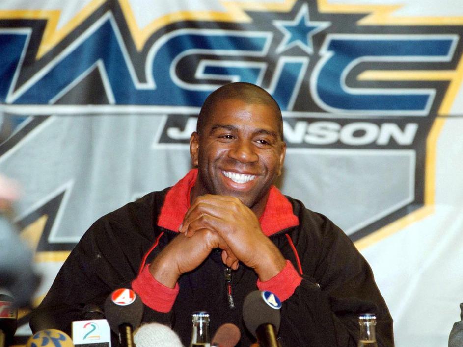magic johnson2. Earvin 'Magic' Johnson je vreden 500 milijonov dolarjev. Nadimek 'Čarobni' si je prislužil že na univerzi, ko je na tekmi zbral 36 točk, 16 skokov in 16 asistenc. Po izjemni uspešni karieri z Los Angeles Lakersi (pet naslovov) se je izkazal tudi kot podjetnik. EPA