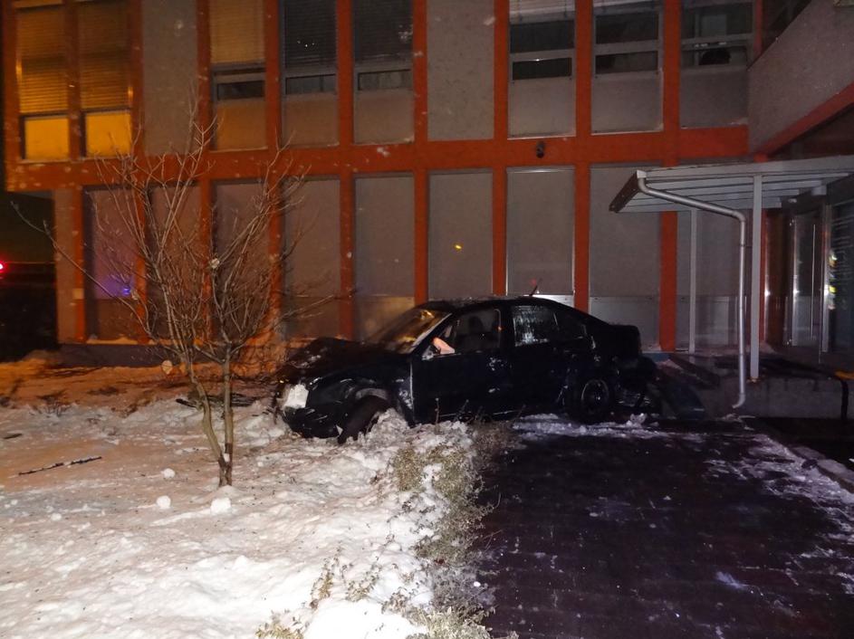 Vinjen mladoletnik z avtomobilom v stavbo mariborskih gasilcev